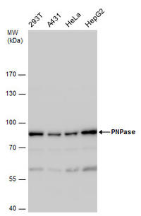 Polyribonucleotide Nucleotidyltransferase 1 antibody, GTX118737, GeneTex, Immunofluorescence image  IF, Polyribonucleotide Nucleotidyltransferase 1 antibody, GTX118737, GeneTex, Immunohistochemistry paraffin image  IHC-P, Polyribonucleotide Nucleotidyltransferase 1 antibody, GTX118737, GeneTex, Immunoprecipitation image  IP, Polyribonucleotide Nucleotidyltransferase 1 antibody, GTX118737, GeneTex, Western Blot image  WB