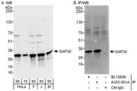Sin3A Associated Protein 30 antibody, A303-551A, Bethyl Labs, Immunoprecipitation image  IP