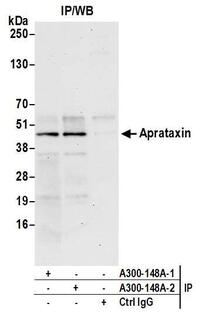 Aprataxin antibody, A300-148A, Bethyl Labs, Immunoprecipitation image  IP