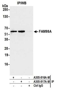 Family With Sequence Similarity 98 Member A antibody, A305-817A-M, Bethyl Labs, Immunoprecipitation image  IP